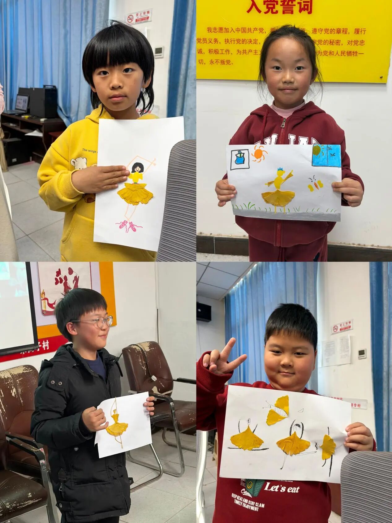 最后分享感受时,有孩子笑着说:“原来不管选哪种方式,只要能拼出好看的画就好!” 社工趁机说:“就像辩论不是要分输赢,而是要学会听别人的想法,找到更棒的答案。” 一句话让会议室里的气氛更暖了,孩子们攥着手里的落叶,已经开始期待接下来的拼贴画环节。