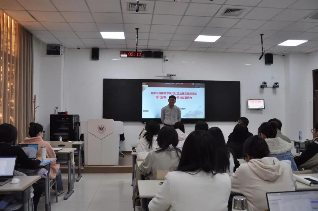 卢老师长期聚焦基层治理与公益慈善研究,兼具扎实理论功底与丰富实务经验。讲座中,他结合行业观察与自身实践经历,重点阐述了两大核心关注方向:一方面,在当前经济发展承压、财政资金压缩的背景下,社工行业回归社会性迎来重要机遇,而公益慈善领域的海量资源仍有待进一步激活,二者的深度融合将为基层服务注入新动能;另一方面,中国式社区治理现代化是行业核心命题,社区作为社会问题与民生服务需求的集中场域,面临着诸多亟待破解的治理难题。卢老师抛出“你期待的美好社区是什么样的”引发同学们思考,有同学表示希望自己所在社区环境干净整洁、生活便利快捷、设施配套完备、居住安全无忧、邻里关系和谐、文化活动丰富、社区充满温度、困难群体得到尊严保障、居民拥有充足互动空间。卢老师指出当前社区治理的突出困境:基层组织行政事务繁杂、人力薄弱且权责不对等,常陷入力不从心的状态;居民参与感不足、邻里互动匮乏,社区共同体意识亟待培育。卢老师强调,社区治理已成为国家发展战略,近年国家也出台了城乡社区协商、加强基层治理体系和治理能力现代化等多项顶层制度设计文件,为基层治理提供了坚实保障。而破局的关键在于动员多元主体参与,明确社区居委会作为基层枢纽型组织的定位,提升整体治理效能。
